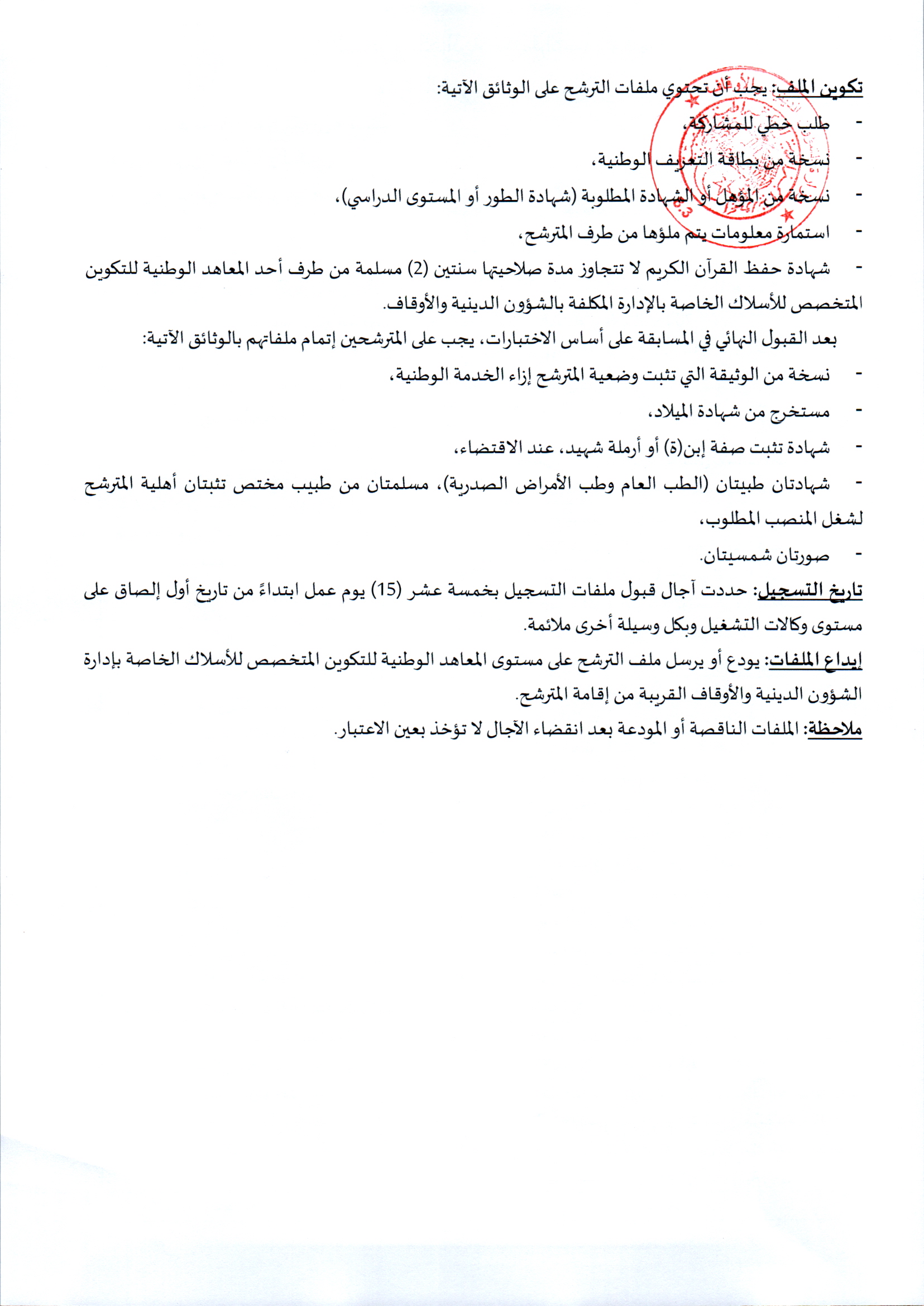إعلان مسابقة الالتحاق بالتكوين المتخصص بالمعاهد