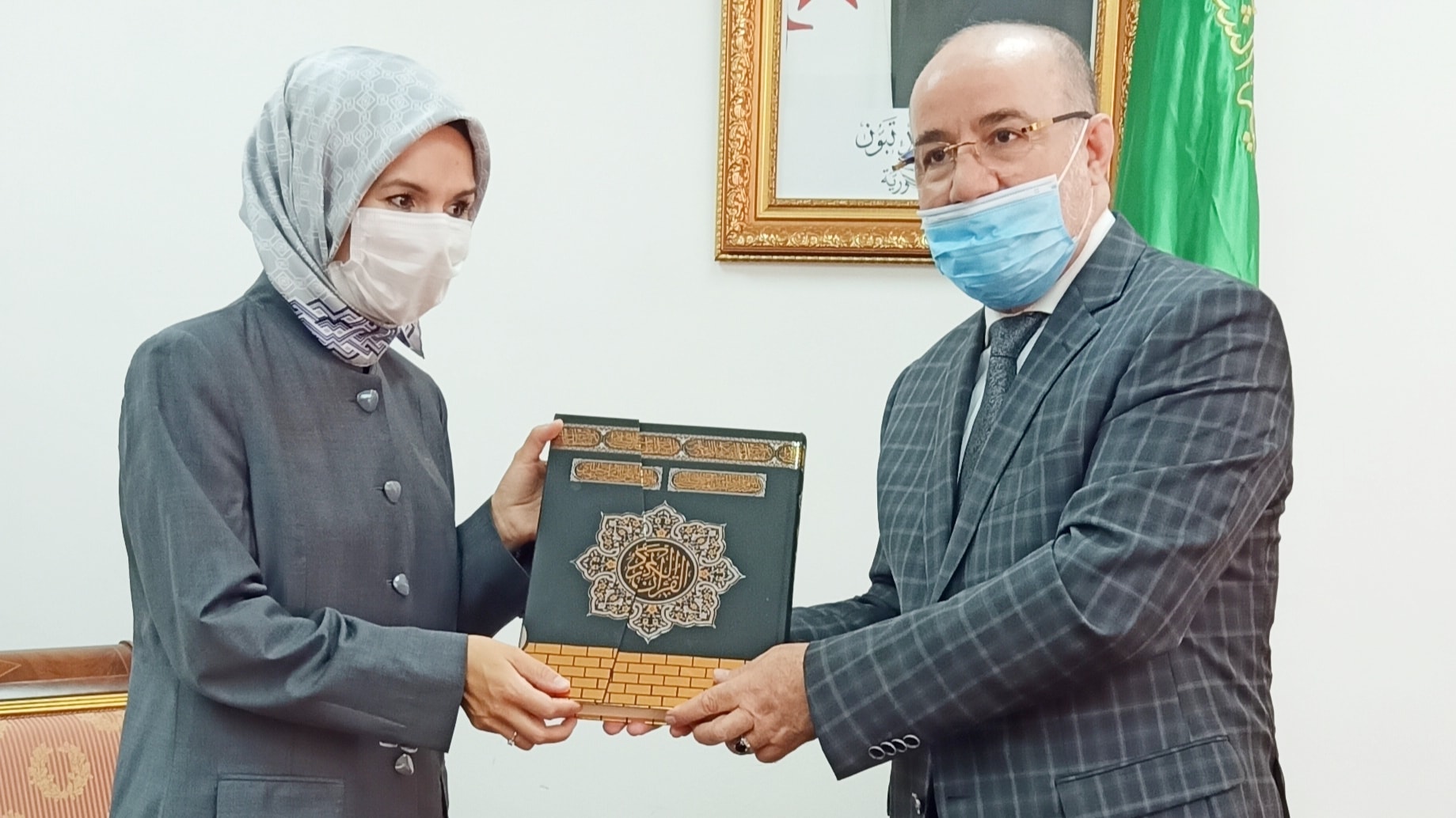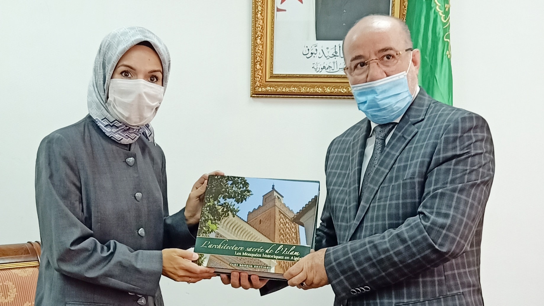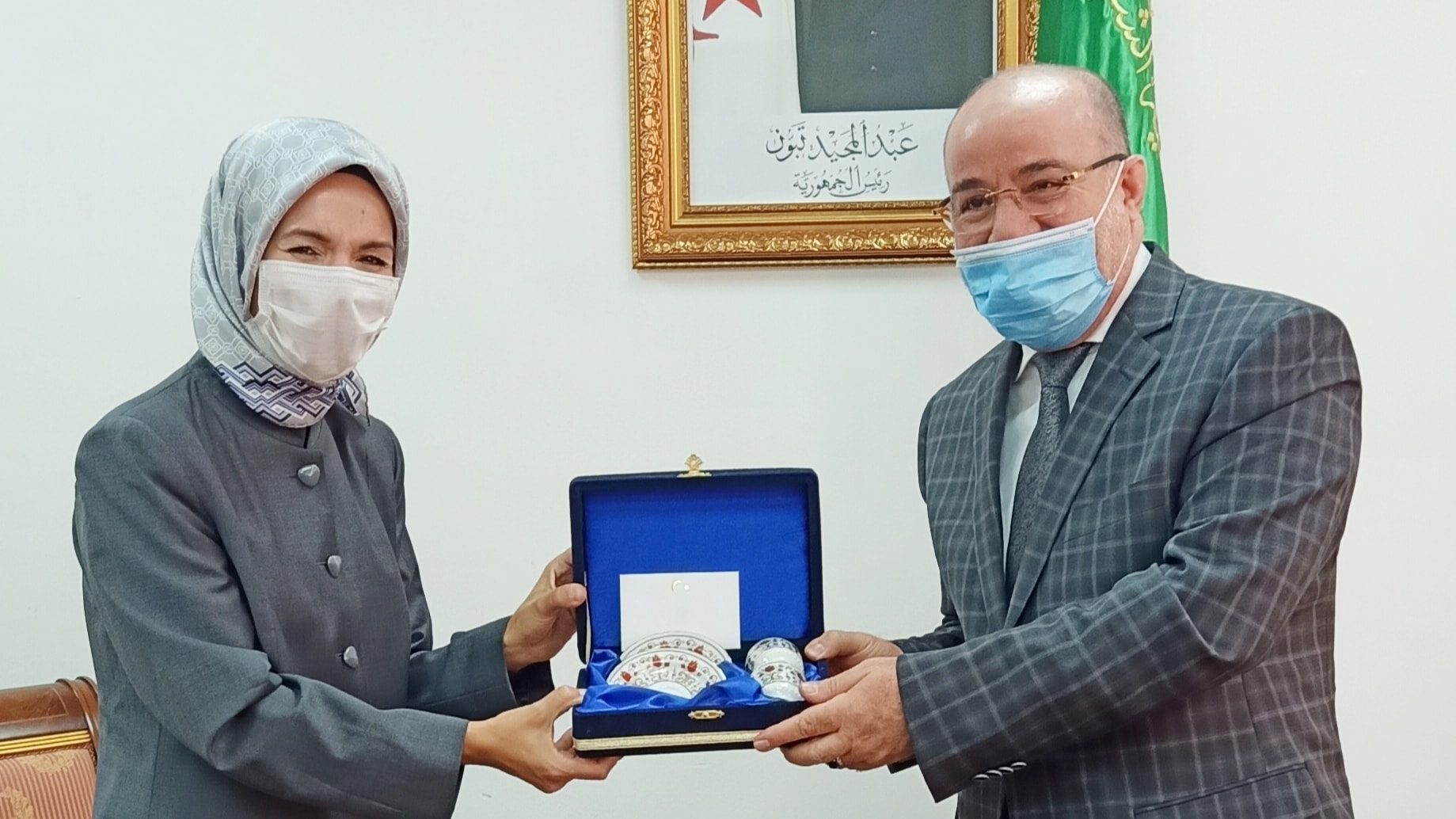 استقبل السيد وزير الشؤون الدينية والأوقاف الدكتور يوسف بلمهدي هذا الثلاثاء 28 جويلية 2020، بمقر وزارة الشؤون الدينية والأوقاف، سعادة سفير دولة تركيا بالجزائر السيدة "ماهينور أوزدمير غوكتاش"، التي أدت زيارة مجاملة للسيد الوزير بعد تعيينها بالجزائر، وقد كان اللقاء فرصة للتعبير عن عمق العلاقات التي تربط بين البلدين والشعبين.