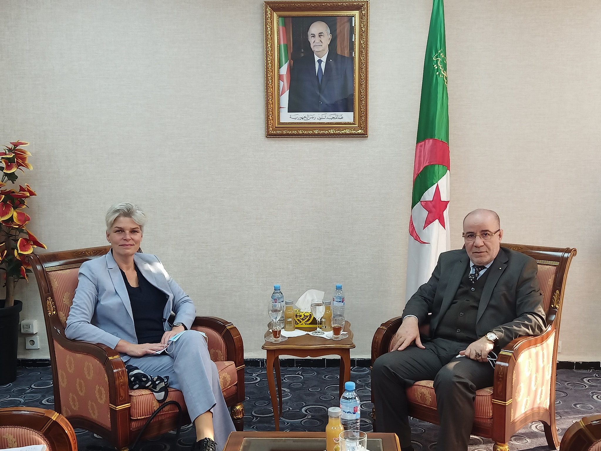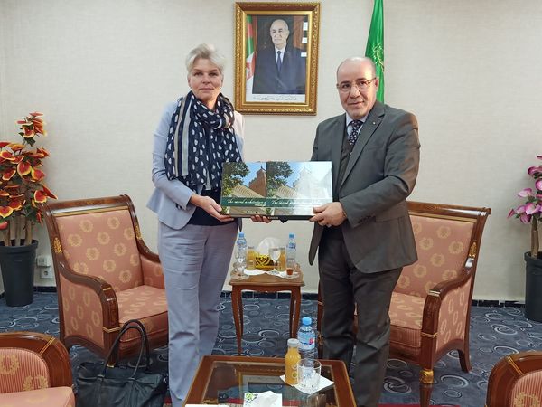 استقبل السيد وزير الشؤون الدينية والأوقاف الدكتور يوسف بلمهدي يوم 20 ديسمبر 2021 بمقر الوزارة، سعادة سفيرة مملكة هولندا بالجزائر، السيدة (جانا فان دير فـيلد Janna Van Der Velde) التي أدت زيارة مجاملة للسيد الوزير، وقد تمحور اللقاء حول ترقية علاقات التعاون بين الدولتين في مجال تسيير الشأن الديني لاسيما الاستفادة من تجربة الجزائر في الوقاية من التطرف والعنف الديني.