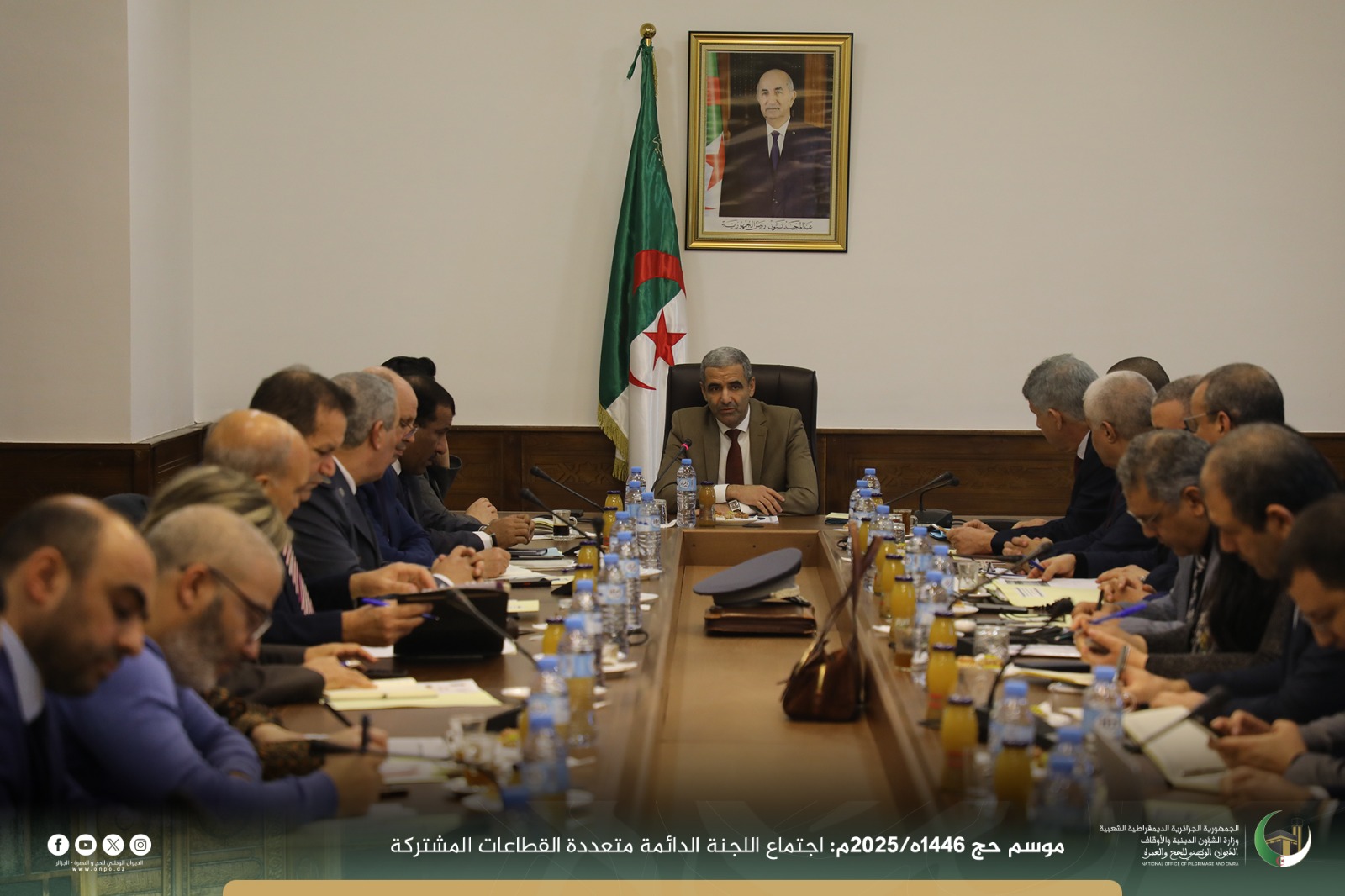 الأمين العام لوزارة الشؤون الدينية والأوقاف الأستاذ رضوان معاش يشرف على اجتماع اللجنة الدائمة متعددة القطاعات، بقاعة الاجتماعات بمقر وزارة الشؤون الدينية والأوقاف وذلك بحضور السيد المدير العام للديوان الوطني للحج والعمرة البروفيسور الطاهر برايك وإطارات من الوزارة والديوان وكذا السادة ممثلي القطاعات الوزارية والهيئات المشاركة في تحضير وتنظيم عملية الحج لهذا الموسم 1446هـ/2025م.