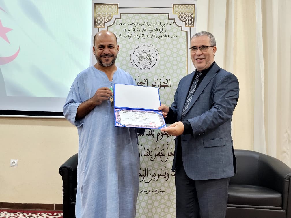 بمناسبة إحياء اليوم الوطني للمجاهد (20 أوت 1955-1956/2025)، السيد الأمين العام لوزارة الشؤون الدينية والأوقاف الأستاذ رضوان معاش يشرف على توزيع مقررات استفادة ومفاتيح سكنات للدفعة الثانية من السادة الأئمة بولاية الجزائر العاصمة المكونة من 07 أئمة.