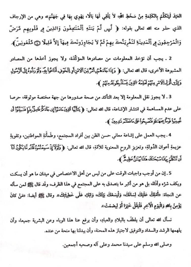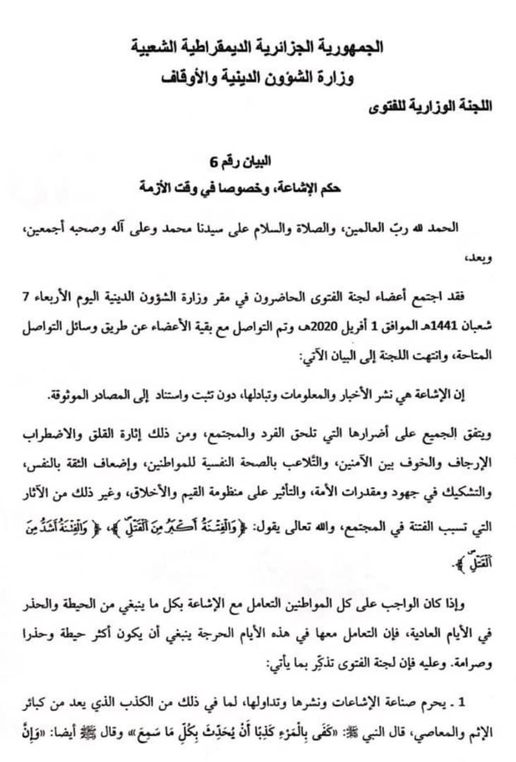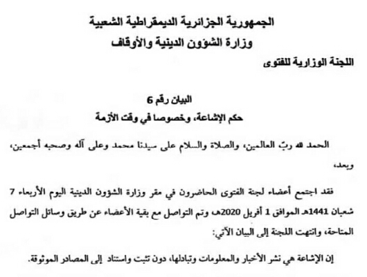 اللجنة الوزارية للفتوى- بيان_رقم 06 - حكم الإشاعة وخصوصا وقت الأزمة