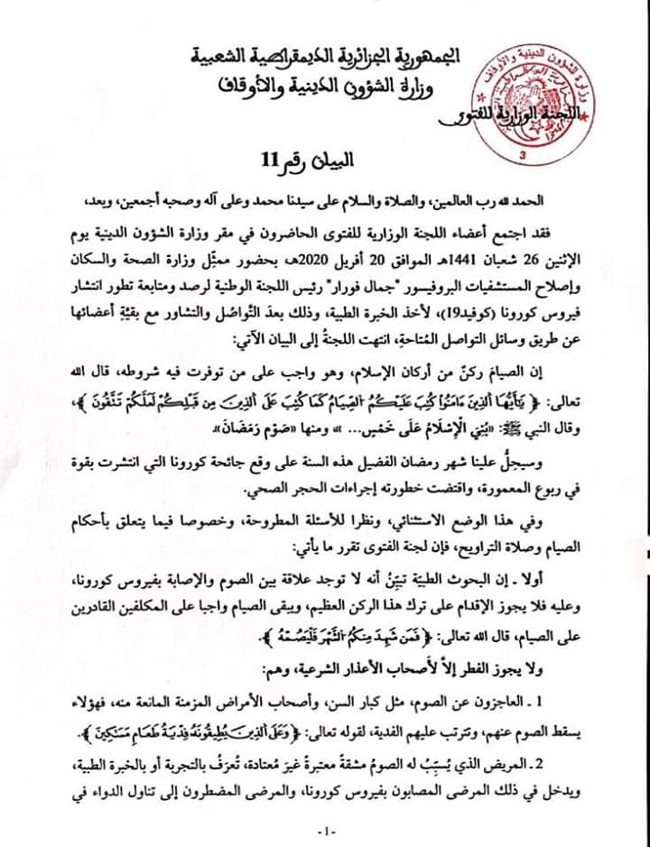 اللجنة الوزارية للفتوى- بيان رقم 11