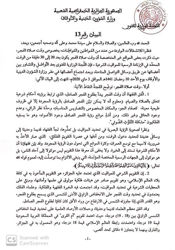 اللجنة الوزارية للفتوى- بيان رقم 13