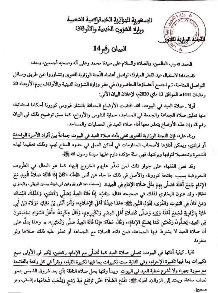 اللجنة الوزارية للفتوى- بيان رقم 14