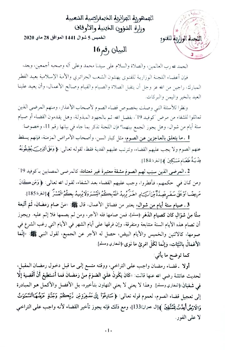 اللجنة الوزارية للفتوى- بيان رقم 16