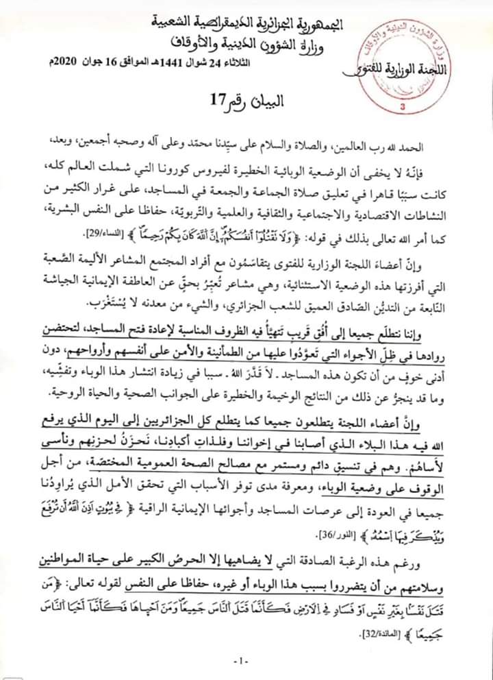 اللجنة الوزارية للفتوى- بيان رقم 17