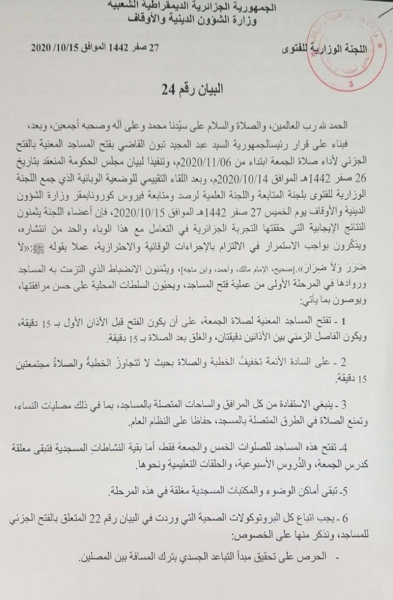 اللجنة الوزارية للفتوى- بيان رقم 24
