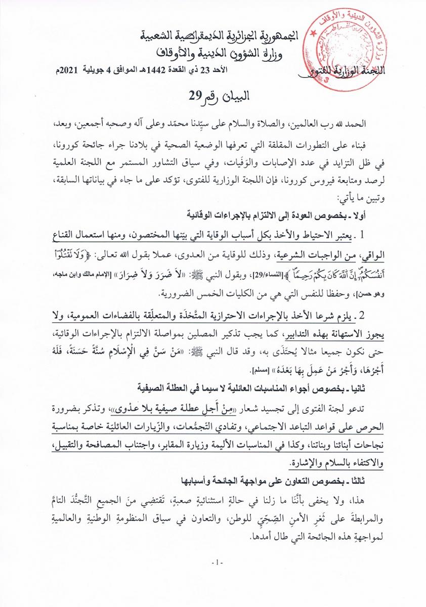 اللجنة الوزارية للفتوى-بيان رقم 29