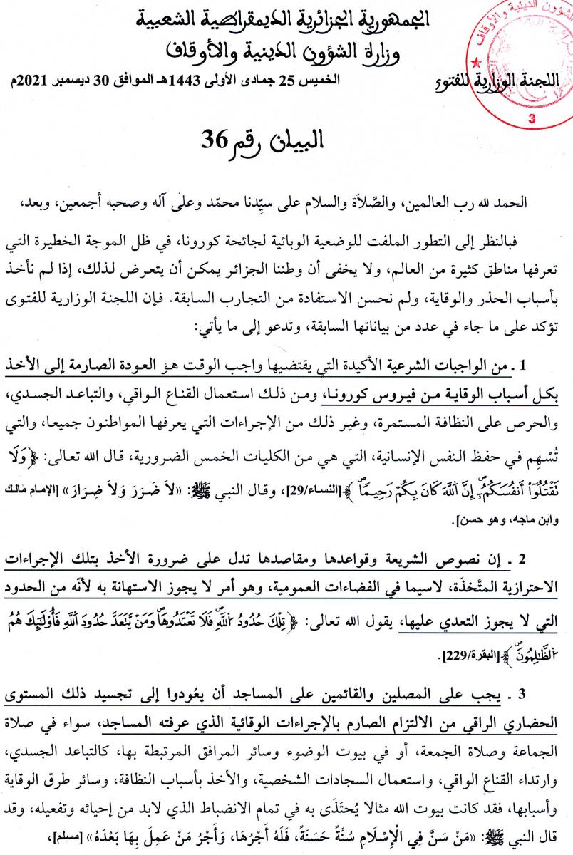 اللجنة الوزارية للفتوى- بيان رقم 36