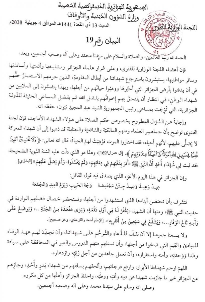 اللجنة الوزارية للفتوى- بيان 19