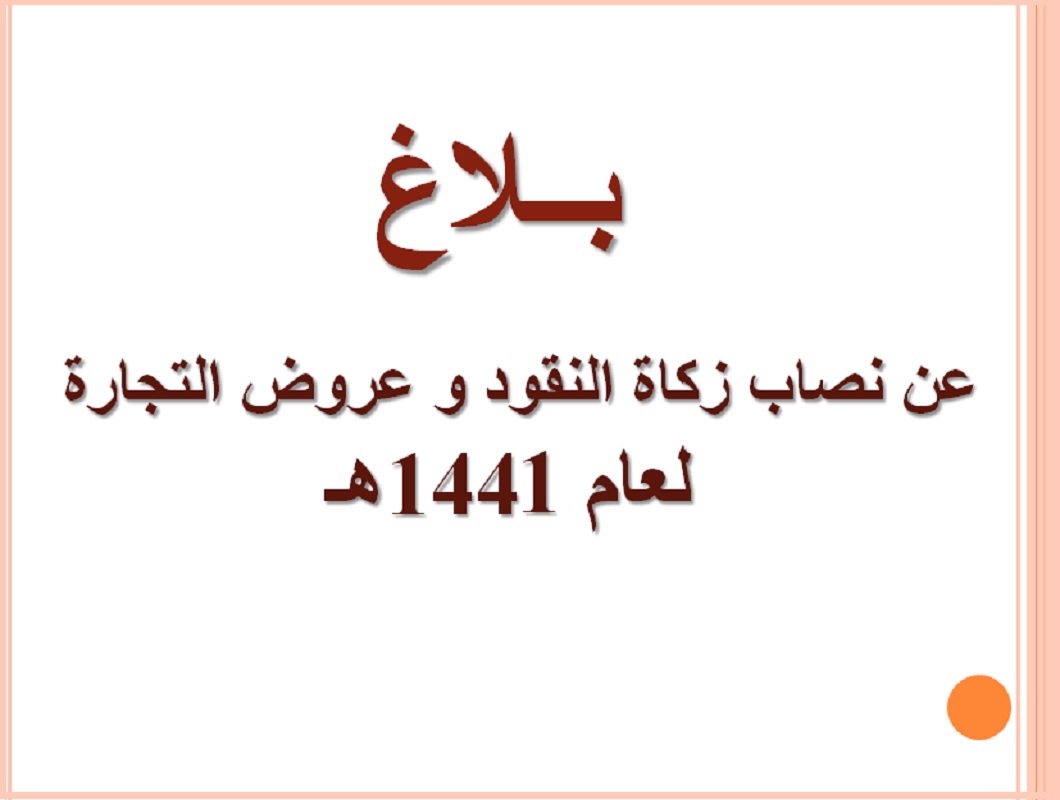 بــلاغ عن نصاب زكاة النقود و عروض التجارة لعام 1441هـ