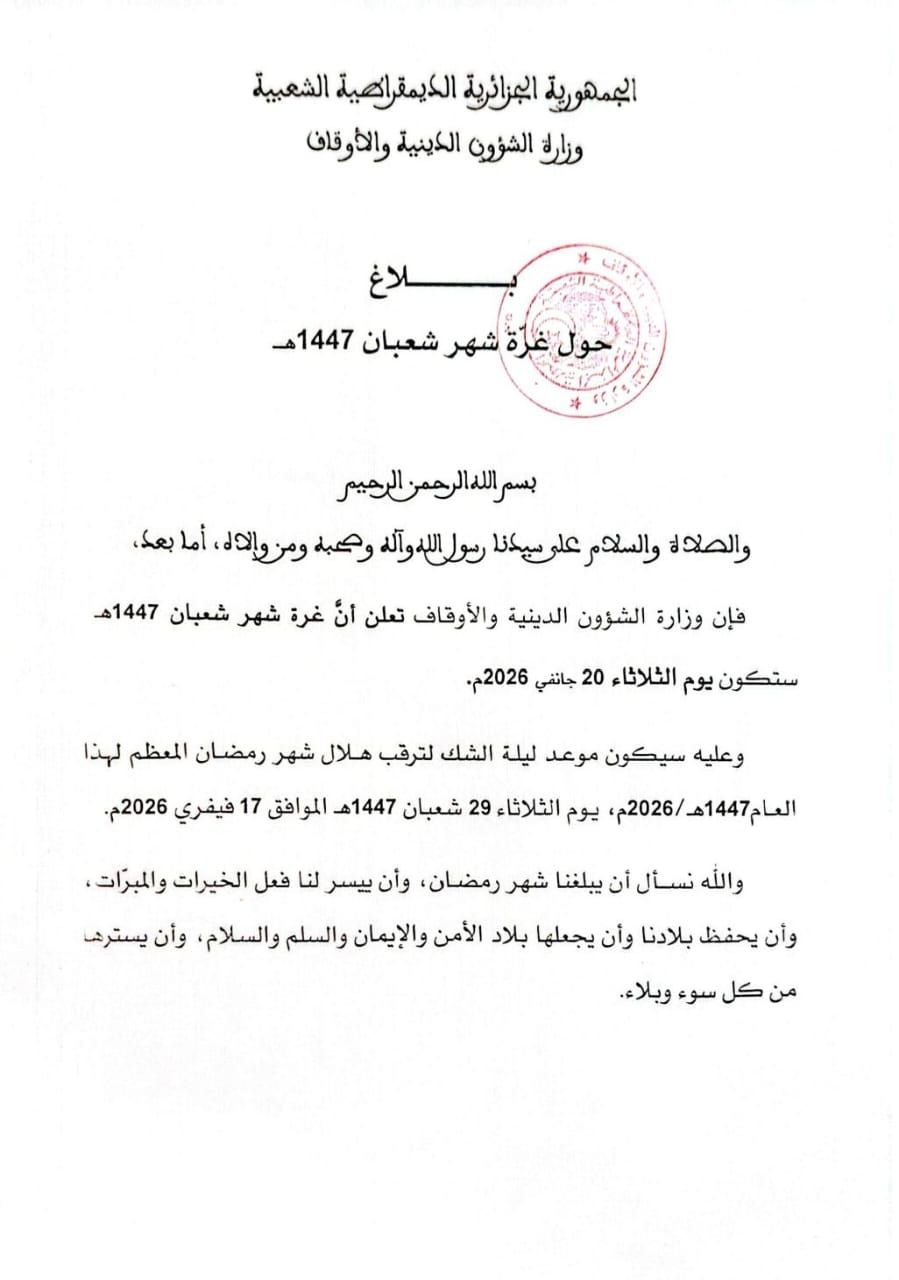بلاغ غرة شهر شعبان 1447 هـ