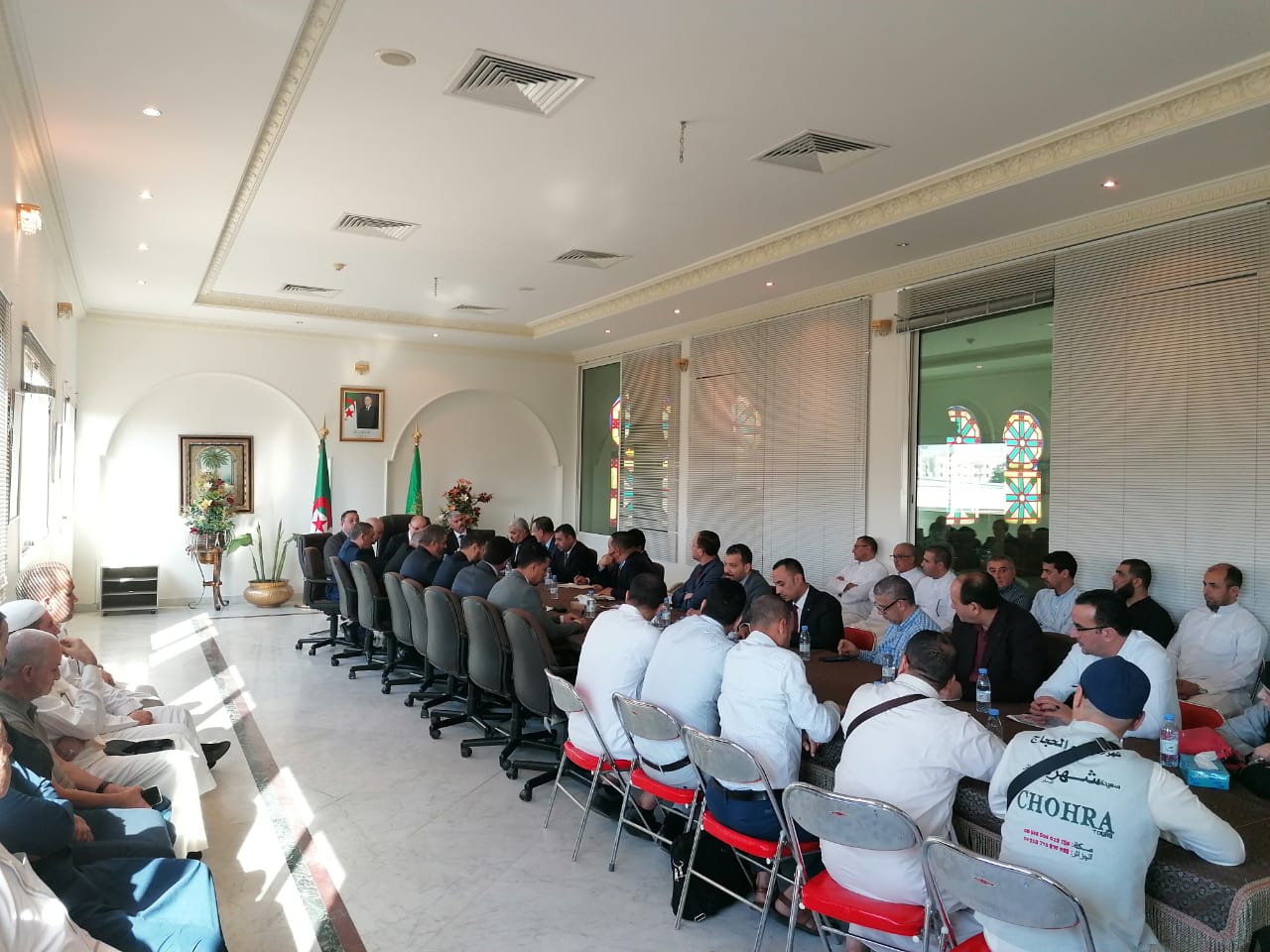 أشرف السيد وزير الشؤون الدينية والأوقاف الدكتور يوسف بلمهدي مساء يوم 26 جمادى الأولى 1441ه-22 جانفي2020م على اجتماع ضم ممثلي وكالات السياحة والأسفار المشاركة في تنظيم عملية الحج للموسم القادم، وذلك بمقر القنصلية العامة الجزائرية بجدة وبحضور السيد القنصل العام بالنيابة والسيد المدير العام للديوان الوطني للحج والعمرة وأعضاء الوفد التحضيري، حيث أكد السيد الوزير في كلمته التوجيهية على ضرورة التفاني في رعاية ضيوف الرحمان، وتوفير كافة الخدمات المطلوبة، والالتزام بالشروط التي تقطعها الوكالة على نفسها مع الحجاج الذين يرافقونها، حرصا على أن يتفرغ الحاج لمناسكه وعبادته بتوفير الظروف الملائم، ثم استمع السيد الوزير لانشغالات ممثلي الوكالات، رغبة في تذليل الصعاب وسعيا لإيجاد الحل المناسب.