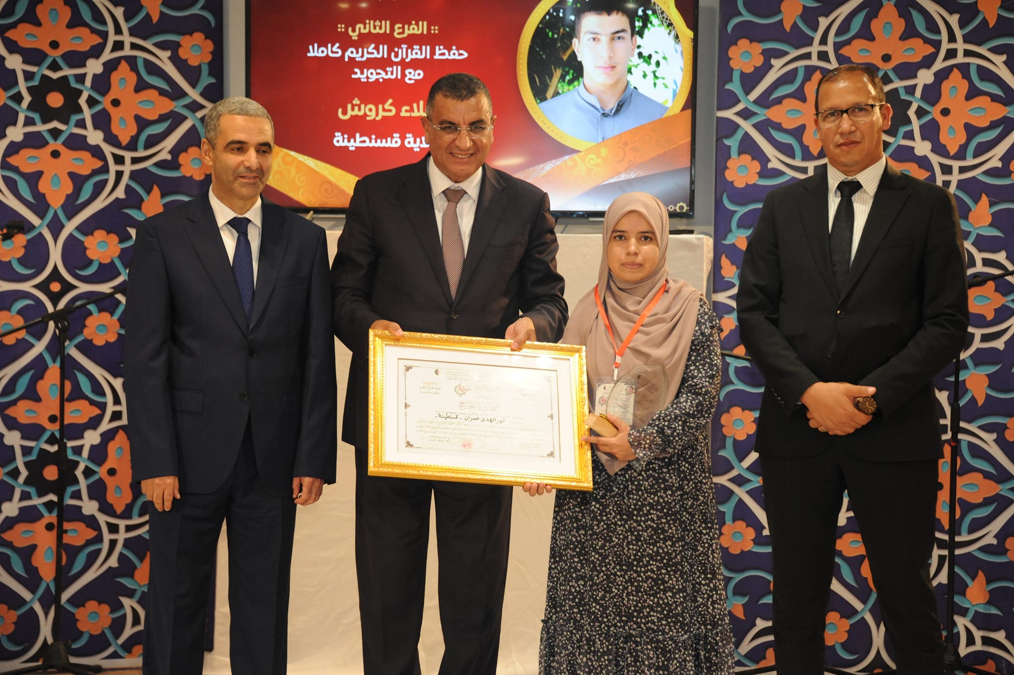 كما فاز بالجائزة الأولى في فرع "حفظ وتجويد القرآن" لهذه المسابقة التي تنافس فيها ستون حافظا وحافظة في ستة فروع، الشاب علاء كروشي من ولاية قسنطينة, بينما عاد المركز الأول في فرعي "صغار حفظة القرآن" (أقل من 15 سنة) و"حفظ القرآن في القراءات السبع" لكل من إسراء ناجي من ولاية المسيلة و عبد الله عريبي من ولاية سطيف على التوالي.