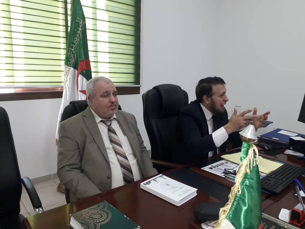 ضمن البرنامج التكويني لفائدة طلبة المعاهد الوطنية للتكوين المتخصص عن طريق التحاضر المرئي عن بُعد، قدّم فضيلة الشيخ عز الدين بوغلم مستشار السيد وزير الشؤون الدينية والأوقاف، وعضو اللجنة الوزارية للفتوى، محاضرة تحت عنوان: "سمات الخطاب الديني المعتدل وخصائصه"، تابعها عن طريق تقنيات التحاضر المرئي عن بُعد طلبة المعاهد المتخصصة في التكوين الخاص بموظفي إدارة الشؤون الدينية والأوقاف عبر الوطن.