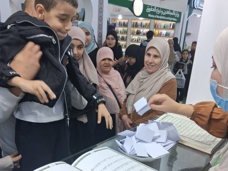 في إطار مشاركتها بالمعرض الدولي للكتاب، نظّمت وزارة الشؤون الدينية والأوقاف على مستوى جناحها مسابقة ثقافية للأطفال، هدفت إلى غرس حبّ القرآن الكريم والمعرفة الدينية في نفوس الناشئة بطريقة تربوية شيّقة.