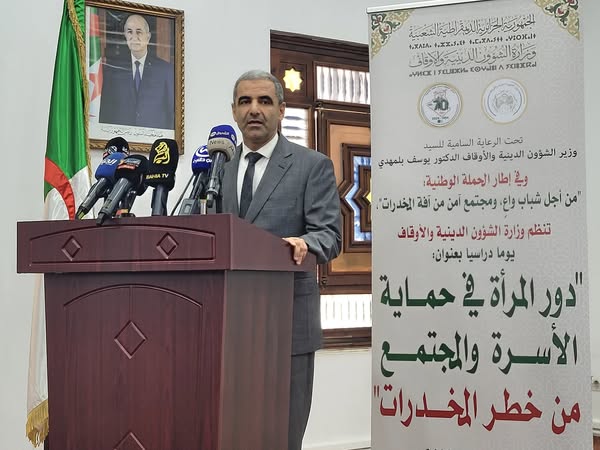 ولدى تدخله خلال هذا اللقاء أكد الأمين العام لوزارة الشؤون الدينية والاوقاف, السيد رضوان معاش, أن تنظيم هذا اليوم الدراسي يأتي في اطار الحملة الوطنية التي أطلقتها الوزارة تحت شعار "من أجل شباب واع, ومجتمع آمن من آفة المخدرات", في سياق الجهود المبذولة "من أجل توعية المجتمع بمخاطر المخدرات, مع استثمار الخطاب الديني في دعم قيم الوقاية والتحصين الأسري, من خلال التركيز على دور المرأة المحوري في حماية الأسرة والمجتمع".