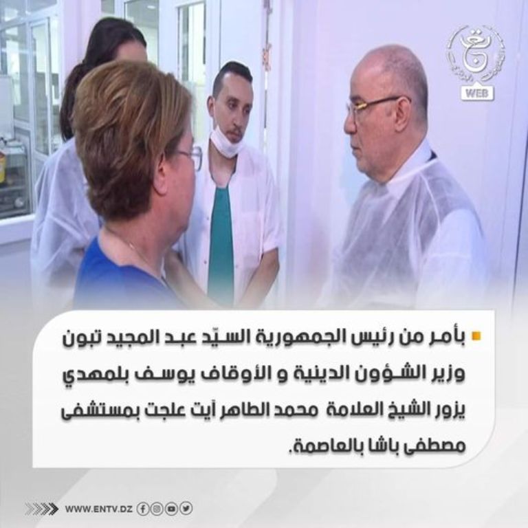 بأمر من رئيس الجمهورية السيّد عبد المجيد تبون، قام وزير الشؤون الدينية والأوقاف الدكتور يوسف بلمهدي مساء يوم الاثنين 12 جوان 2023 بزيارة الشيخ العلامة محمد الطاهر آيت علجت بمستشفى مصطفى باشا بالعاصمة. وقد أكد السيد الوزير في تصريح للمؤسسة العمومية للتلفزيون الجزائري أن الحالة الصحية للشيخ حرجة بحسب الأطباء، ويؤكد أن كل الطواقم الطبية بقسم الإنعاش بالمستشفى مجندة وتقوم بواجبها .