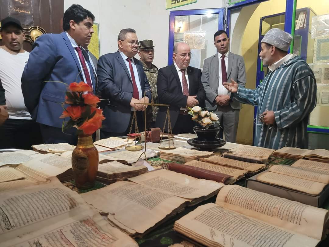 وتلقى السيد الوزير في عين المكان شروحات حول مختلف النشاطات الثقافية والعلمية لهذه المنشأة التي تعد فضاء لحماية والمحافظة على مخزون يحتوي على أزيد من 300 من المخطوطات التي تعالج مواضيع ذات صلة بالعلوم الإسلامية وغيرها من المواضع الأخرى المتعلقة بالحياة الثقافية والاجتماعية للمنطقة والتي تعد جزءا لا يتجزأ من التراث المادي المحلي والوطني.