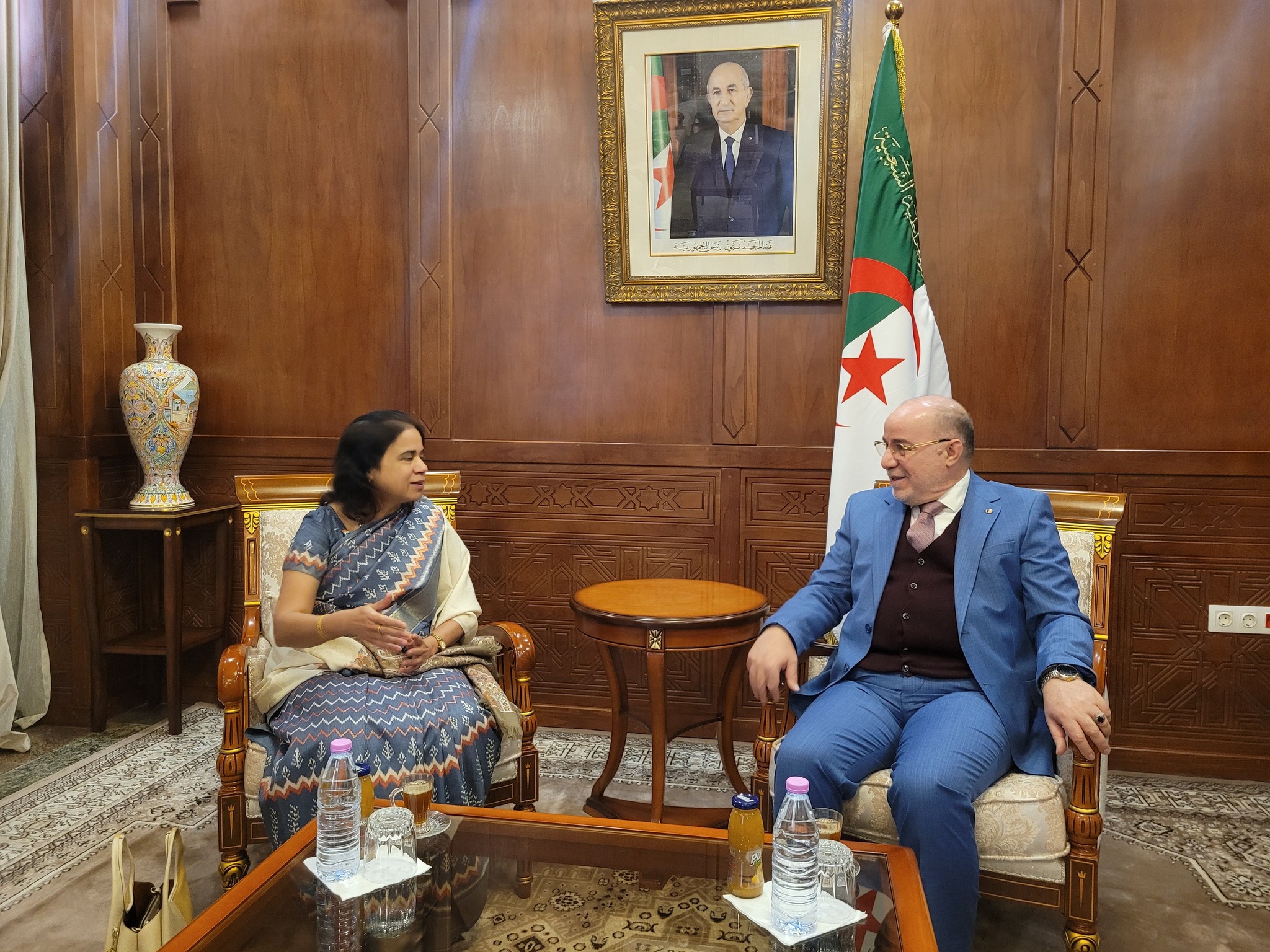 استقبل السيد وزير الشؤون الدينية والأوقاف الدكتور يوسف بلمهدي اليوم 16 فيفري 2025 بمقر الوزارة، سعادة سفيرة جمهورية الهند لدى الجزائر، السيدة سواتي فيجاي كولكارني.