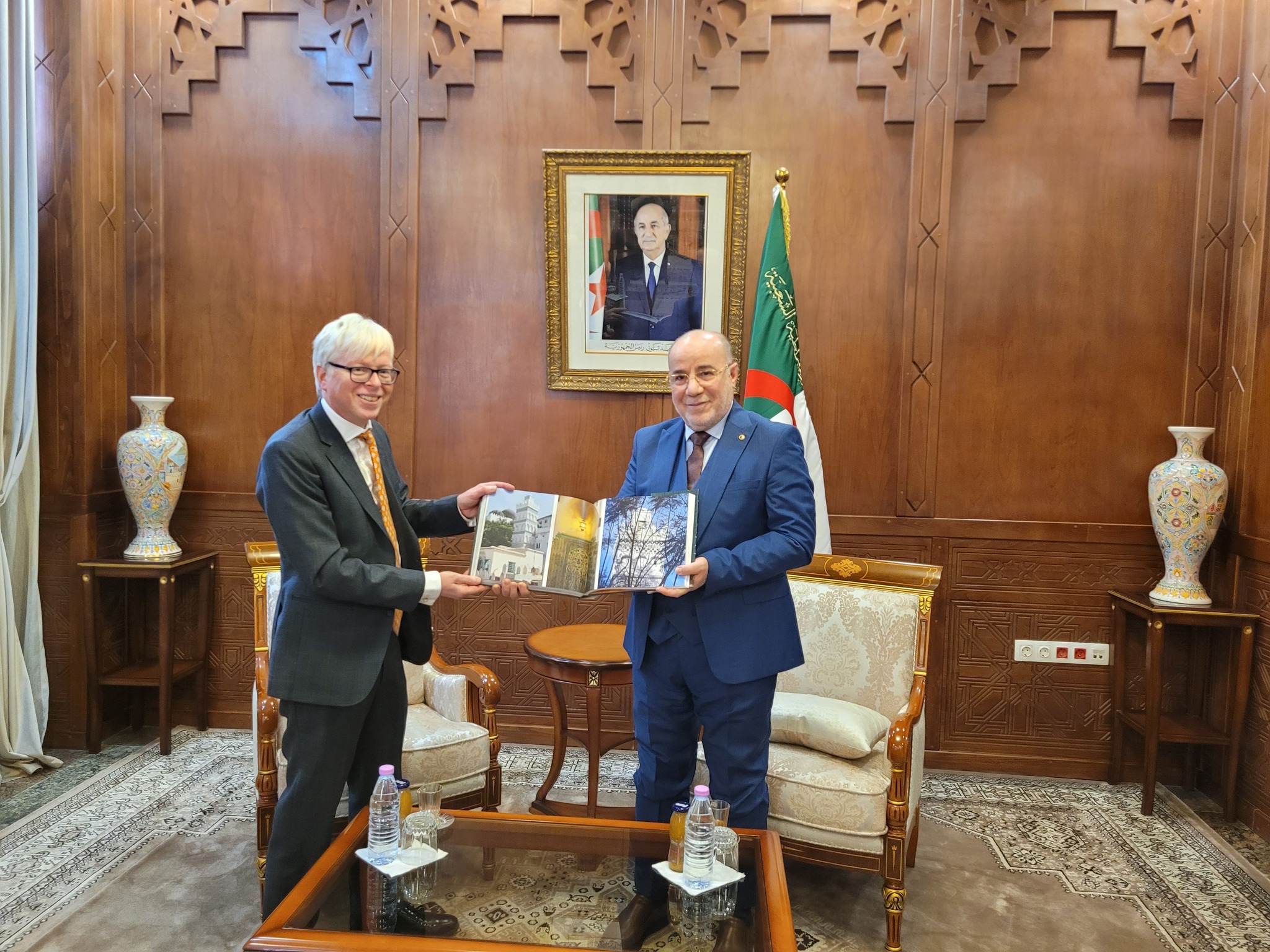 استقبل السيد وزير الشؤون الدينية والأوقاف الدكتور يوسف بلمهدي اليوم 10 فيفري 2025 سفير المملكة المتحدة لبريطانيا العظمى وإيرلندا الشمالية بالجزائر، السيد جيمس روبرت ستيفان داونر.
