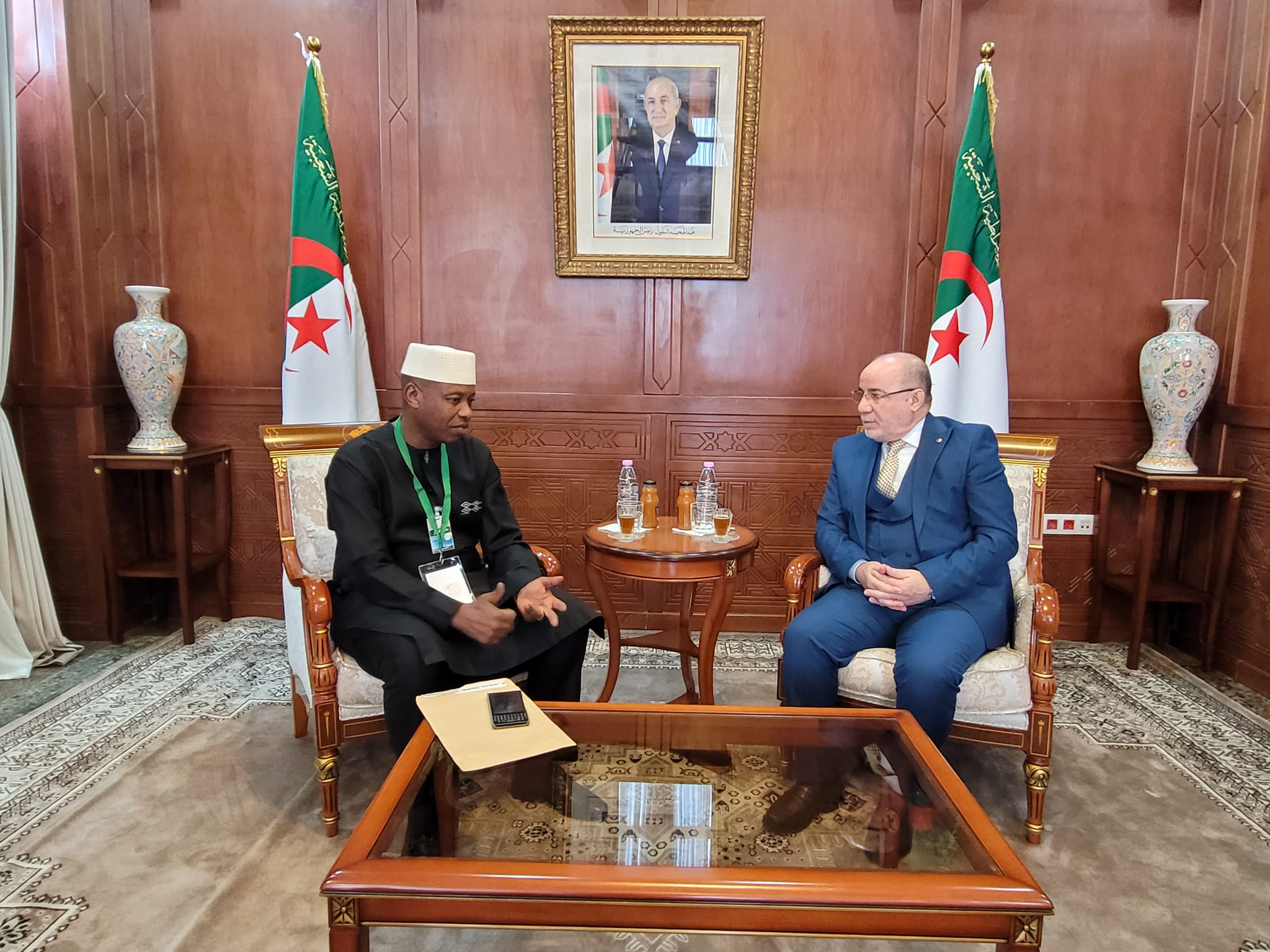 واختتم اللقاء بتقديم هدية لضيف الجزائر، ممثلة في مصحف رودوسي بالخط الجزائري، وموسوعة العمارة الإسلامية في الجزائر، ونسخ من مصحف الجزائر بطريقة برايل.