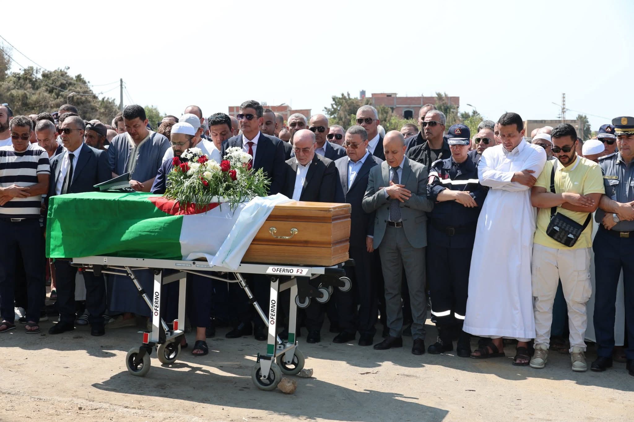 وقد جرت مراسم الدفن بمقبرة عين طاية، بحضور وزير الداخلية والجماعات المحلية والتهيئة العمرانية، السيد إبراهيم مراد، ووالي ولاية الجزائر، السيد محمد عبد النور رابحي، والمدير العام للحماية المدنية، العقيد بوعلام بوغلاف، والمدير العام للأمن الوطني، السيد علي بداوي.