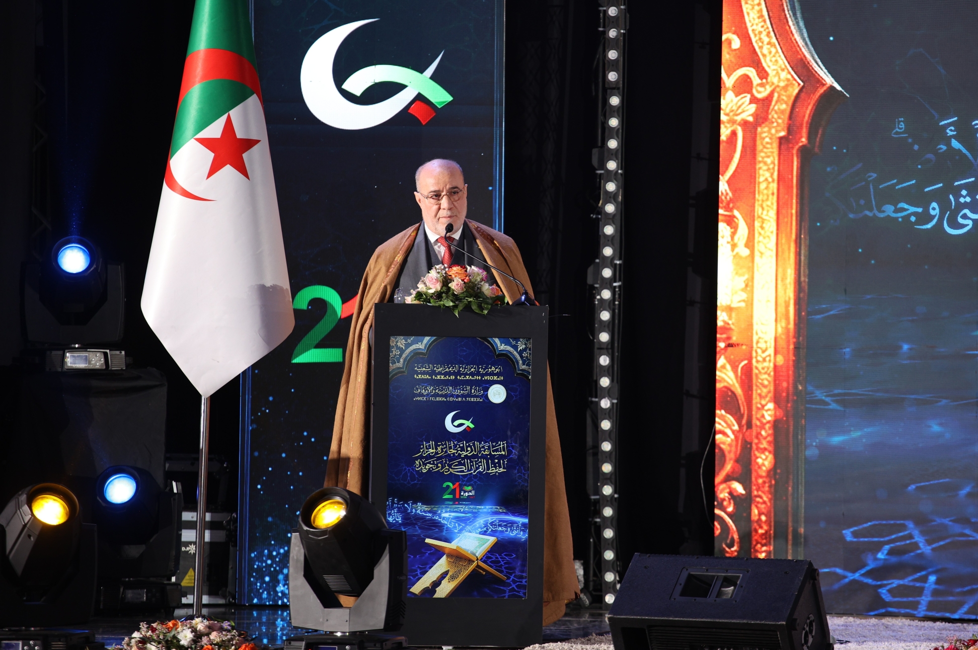 أشرف السيد وزير الشؤون الدينية والأوقاف، الدكتور يوسف بلمهدي، اليوم الاثنين 12 جانفي 2026، الموافق لـ23 رجب 1447هـ، بالجزائر العاصمة، على افتتاح فعاليات المسابقة الدولية لجائزة الجزائر لحفظ القرآن الكريم وتجويده في طبعتها الحادية والعشرين، المنظمة تحت الرعاية السامية لرئيس الجمهورية، السيد عبد المجيد تبون.
