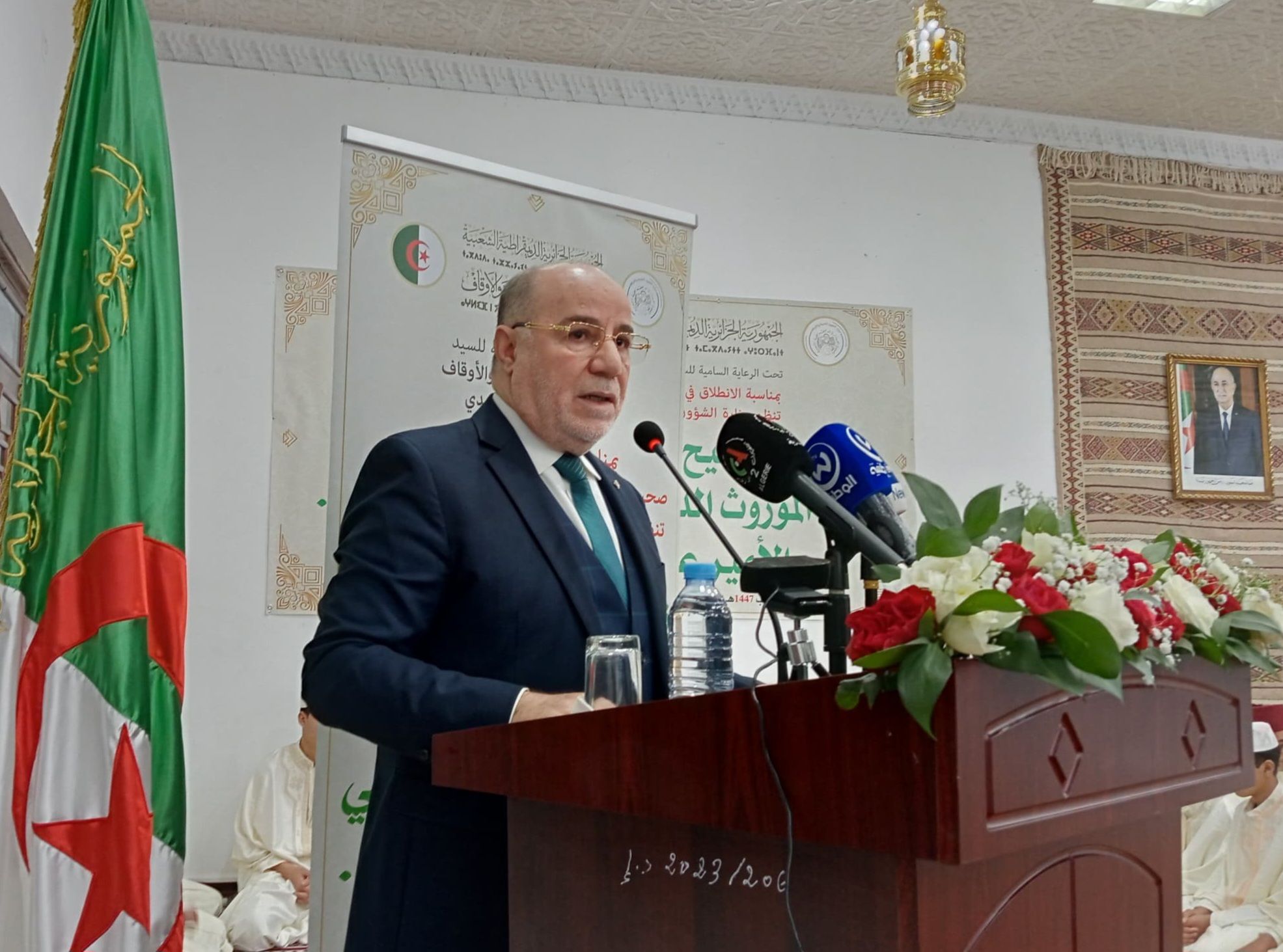 وختم السيد الوزير بالتأكيد على أن الجزائر تواصل اليوم هذه المسيرة خدمةً للقرآن الكريم والسُّنّة النبوية الشريفة، ودعمًا للمساجد وحفّاظ القرآن والسُّنّة، وترسيخًا للمرجعية الدينية الوطنية التي يعتز بها الشعب الجزائري.