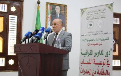 أشرف السيد وزير الشؤون الدينية والأوقاف الدكتور يوسف بلمهدي، اليوم الاثنين بالجزائر العاصمة، على افتتاح يوم دراسي بعنوان" دور المدارس القرآنية في توعية الشباب والوقاية من المخدرات", بحضور عدد من المختصين و إطارات من القطاع.