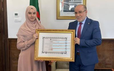 كرم وزير الشؤون الدينية والأوقاف الدكتور يوسف بلمهدي صباح اليوم 25 سبتمبر 2023 بمقر الوزارة، الحافظة ياسمين ولد دالي