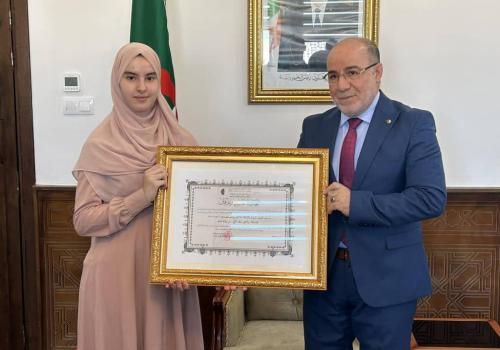 وزير الشؤون الدينية والأوقاف يكرم الحافظة ياسمين ولد دالي