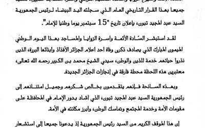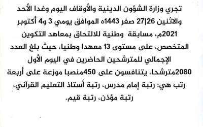 أشرف وزير الشؤون الدينية والأوقاف الدكتور يوسف بلمهدي أمسية الاثنين 27 سبتمبر 2021 على اجتماع ضم إطارات الوزارة للتحضير للأسبوع الوطني للقرآن الكريم في طبعته الثالثة والعشرين، وقد أعطى السيد الوزير توجيهات صارمة لتهيئة كل الظروف التي تساهم في نجاح هذا الموعد السنوي الذي تحتفي فيه الجزائر بالقرآن الكريم وأهله.