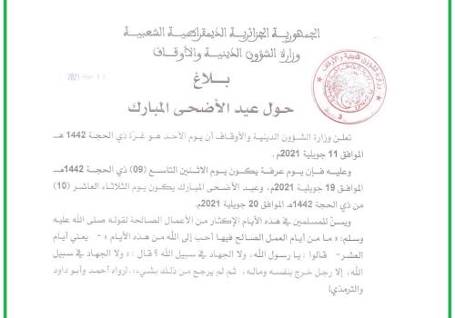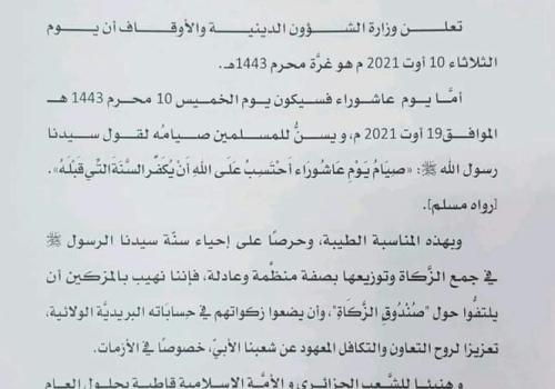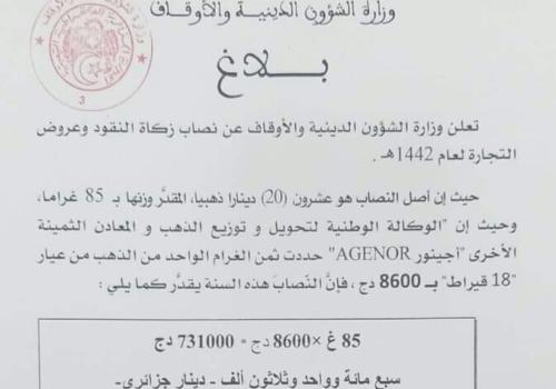بلاغ حول نصاب زكاة النقود و عروض التجارة لعام 1442هـ