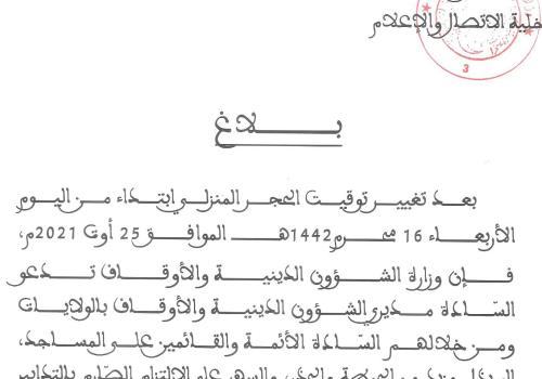 بلاغ عن فتح أبواب المساجد لصلاتي المغرب و العشاء