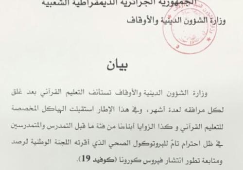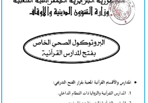 البروتوكول الصحي الخاص بفتح المدارس القرآنية