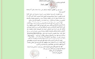ورد في بيـــان اللجنة الوزاريـــة للفتوى المجتمعة بتـــاريخ 20 رجب 1441ـ 15 مــارس 2020، في البند رقـــم 13: "يبقى اجتماع اللجنة الوزارية للفتوى مفتوحا للمتابعة وإصدار الفتاوى التي تتناسب مع تطور الوضع".