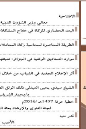 السنة 14 - العدد 01 - ربيع الأول - ربيع الثاني - جمادى الأولى 1438هـ / جانفي - فيفري 2016 م.