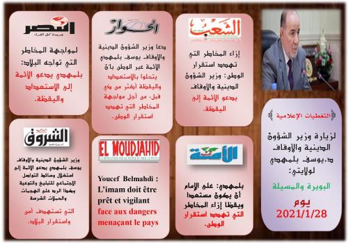 التغطيات الإعلامبة لزيارة وزير الشؤون الدينية والأوقاف الدكتور يوسف بلمهدي لولايتي البويرة و المسيلة.