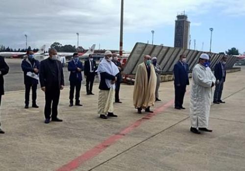 استقبال السيد وزير الشؤون الدينية والأوقاف الدكتور يوسف بلمهدي بمطار هواري بومدين لجثمان فقيد الشؤون الدينية والأوقاف بأرض المهجر الشيخ "أحمد العمري"