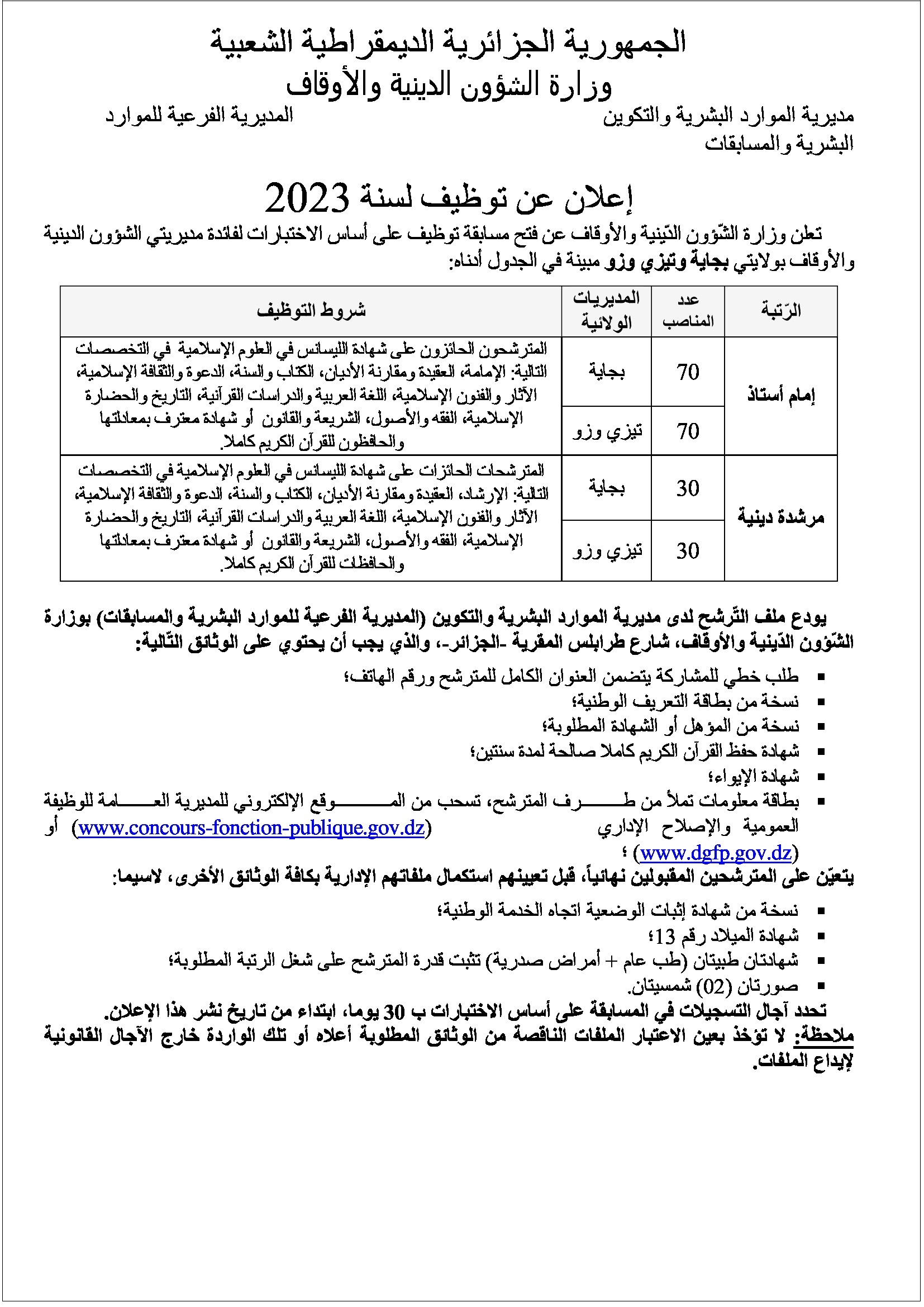 إعلان عن توظيف لسنة 2023