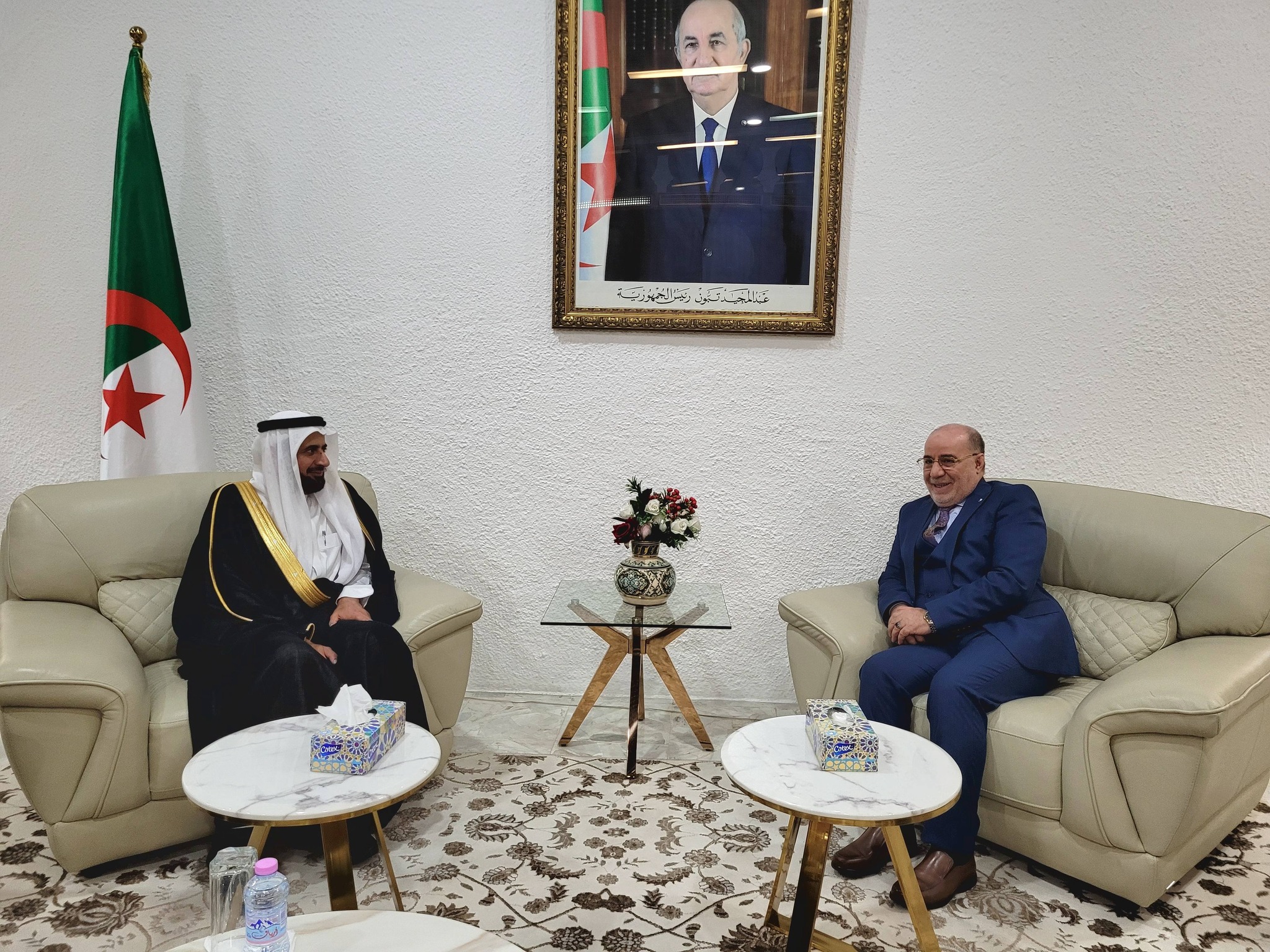 استقبل السيد وزير الشؤون الدينية والأوقاف الدكتور يوسف بلمهدي، مساء اليوم الثلاثاء 03 فيفري 2026، بالقاعة الشرفية لمطار هواري بومدين الدولي، معالي وزير الحج والعمرة بالمملكة العربية السعودية الشقيقة الدكتور توفيق بن فوزان الربيعة، الذي حلّ على رأس وفد هام بالجزائر في زيارة عمل.