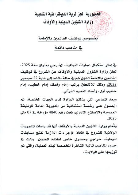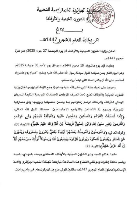 صدور القانون رقم 25-06 مؤرخ في 23 محرم عام 1447 الموافق 19 يوليو سنة 2025، يتعلق بالأوقاف.