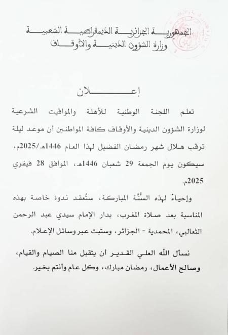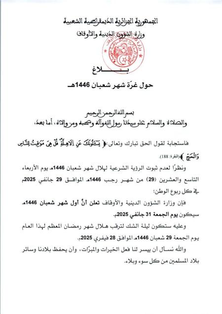 بلاغ عن غرة شهر شعبان 1446 هـ
