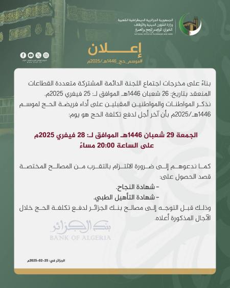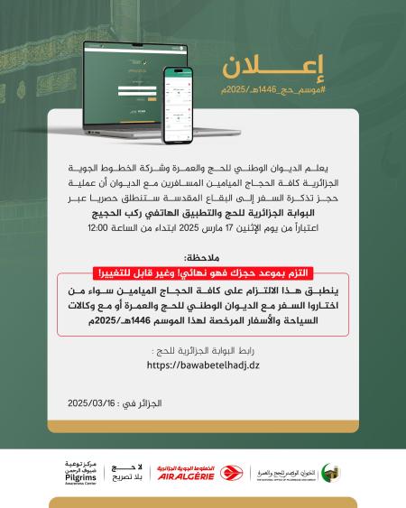 إعلان بخصوص حجز تذكرة السفر إلى البقاع المقدسة