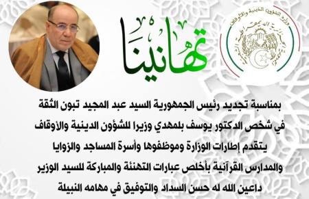 تهنئة بمناسبة تجديد الثقة في السيد وزير الشؤون الدينية والأوقاف