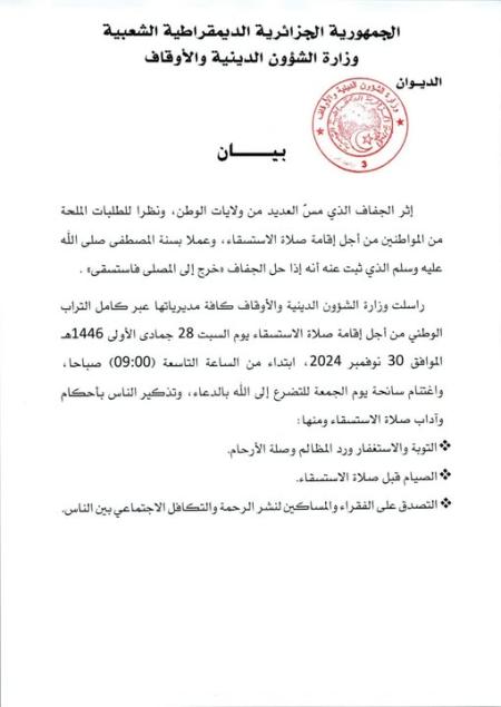 علان عن صلاة الاستسقاء
