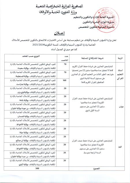إعلان مسابقة الالتحاق بالتكوين المتخصص بالمعاهد